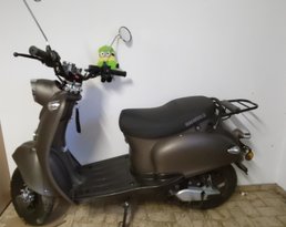 Unser Mofa-Roller Rex 25 e-Novation. Er tankt ausschließlich an der Steckdose und ist mit seinen 1,5 kW elektrischen Leistung sehr gut dabei. Die Mofa-typischen Merkmale "Lahm, laut & stinkt" treffen hier nicht mehr zu. Ab 15 Jahren zu fahren. Es ist kein Führerschein erforderlich, lediglich eine Prüfbescheinigung.
